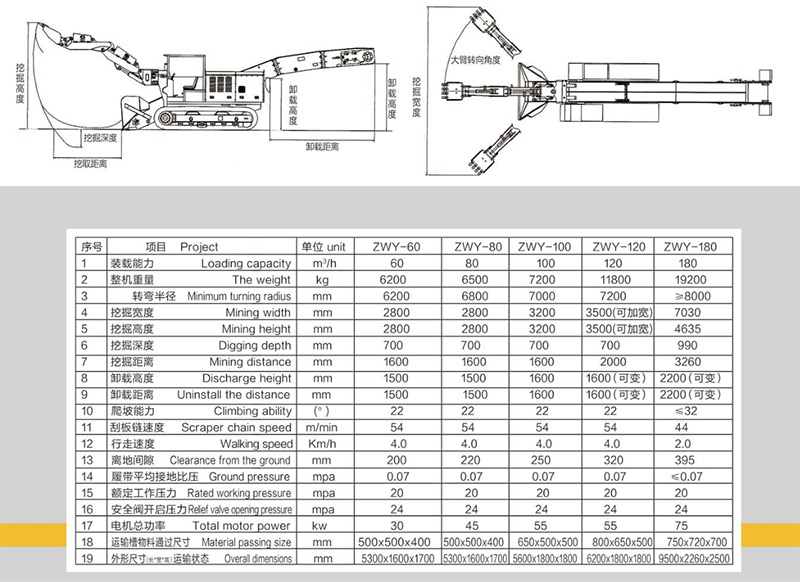 配備三節(jié)臂(帶破碎錘)后,可適用于煤巷掘進(jìn)、煤巷開口、半煤巖巷掘進(jìn)快速出渣,三節(jié)臂裝載機(jī)能彌補(bǔ)標(biāo)準(zhǔn)的兩節(jié)臂裝載機(jī)工作不到的死角,增加工作范圍。